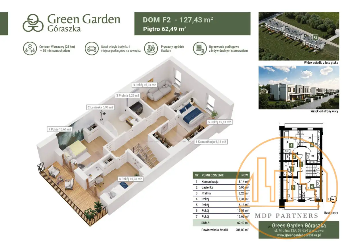 Green Garden Góraszka wyróżniają:-Przemyślane układy zapewniającymi wygodne strefowanie (część dzienna + część nocna).