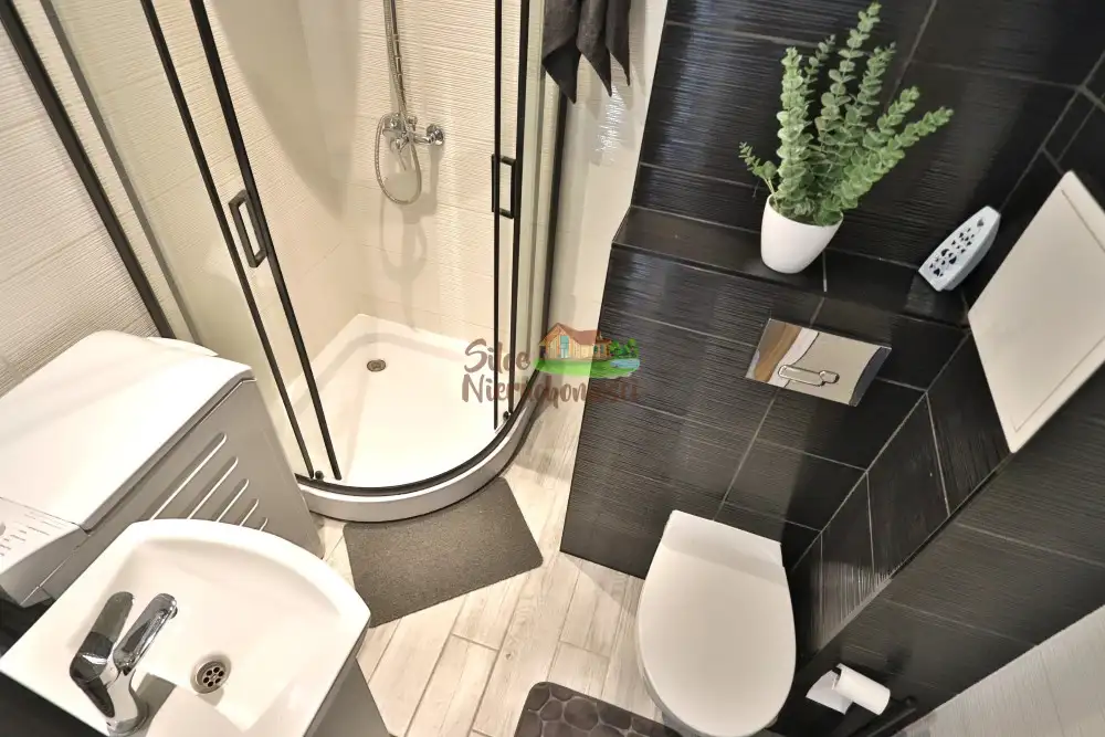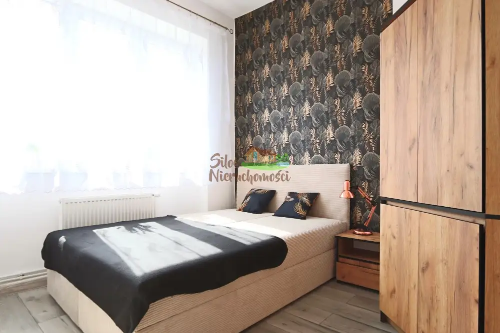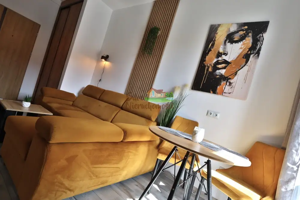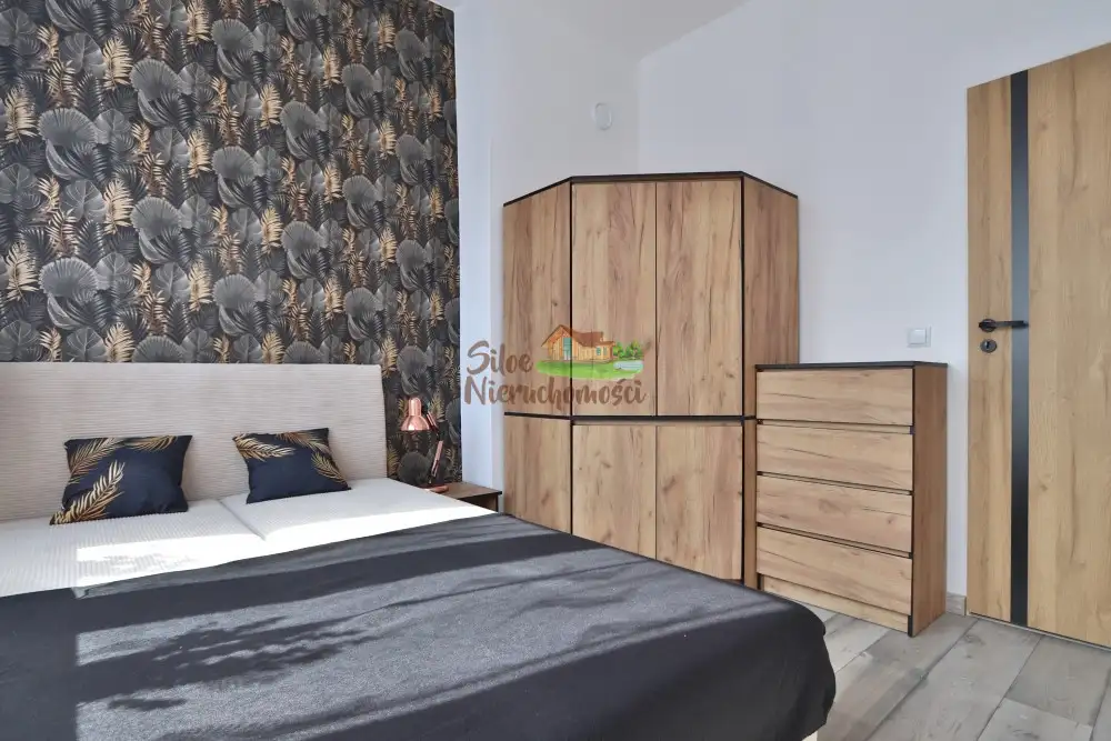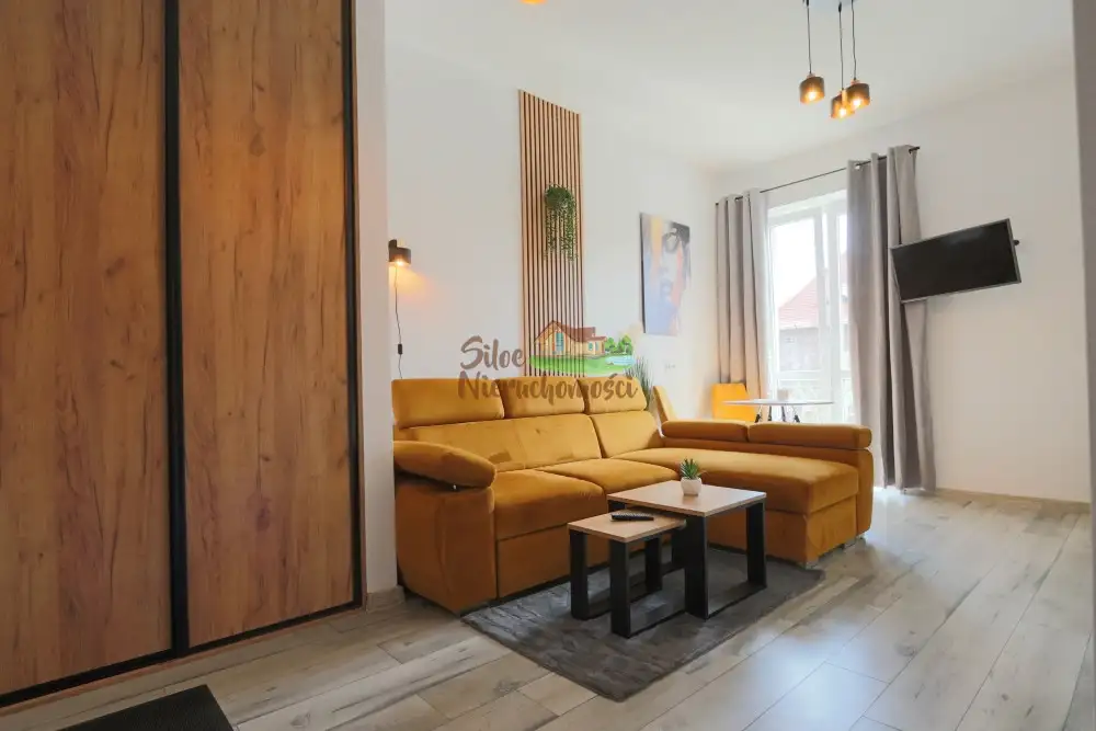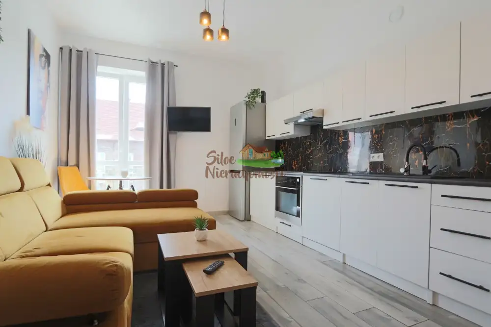 mieszkania to 48,40m² i umiejscowione jest na tak poszukiwanym pierwszym piętrze budynku. W salonie z aneksem kuchennym znajduje się nowoczesny narożnik oraz krzesła w tym samym odcieniu, a także okrągły stolik i wysuwany stolik kawowy. Kuchnia urzeka zabudową meblową, w której znajdziemy lodówkę, piekarnik, płytę grzewczą, zmywarkę oraz okap. Drugim pomieszczeniem jest pełna światła sypialnia, wyposażona w duże łóżko, szafkę nocną, lampkę, pojemną narożną szafę oraz komodę. W łazience czeka na nas kabina prysznicowa, toaleta, umywalka z szafką oraz pralka. Przy wejściu do mieszkania wita nas przestronna zabudowana szafa, dodająca funkcjonalności temu urokliwemu miejscu. Kamienica, jako urokliwy budynek mieszkalny, oferuje doskonałą izolację termiczną - latem emanuje przyjemnym chłodem, a zimą otula ciepłem. Dodatkowo, znaczna wysokość pomieszczeń w kamienicy wzbogaca wrażenie przestronności. Lokalizacja mieszkania jest jego kolejnym atutem - Aleja Wolności - centrum miasta, pełna miejska infrastruktura w pobliżu. Dworzec PKP, PKS, liczne sklepy, przychodnie, przedszkola, żłobki i szkoły to wszystko jest w odległości zaledwie kilku kroków, a spacer na Starówkę to kwestia zaledwie kilkunastu minut drogi. Mieszkanie to stanowi idealne miejsce do zamieszkania dla niepalącej osoby lub pary ceniącej nowoczesne wykończenie wnętrz.