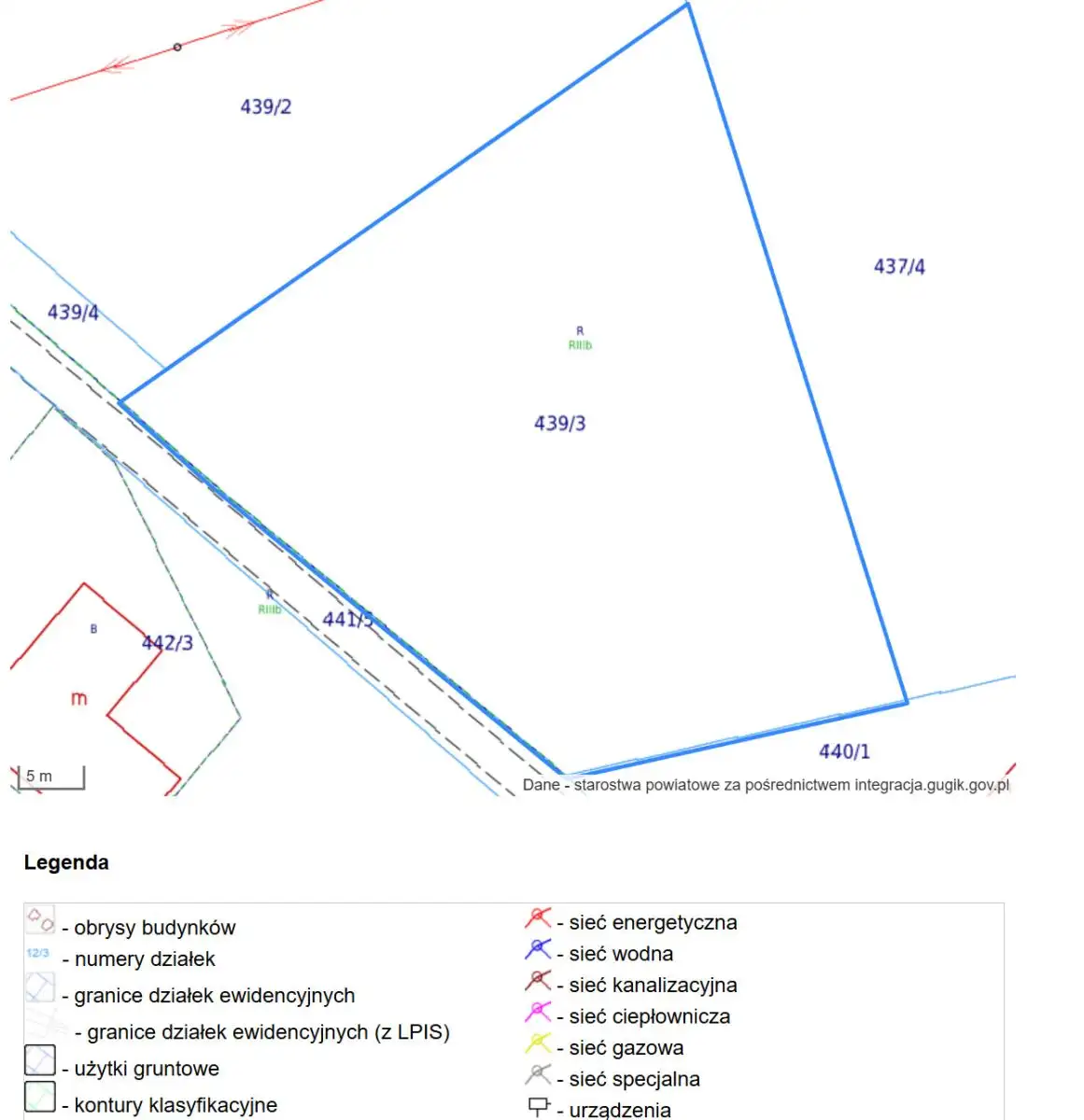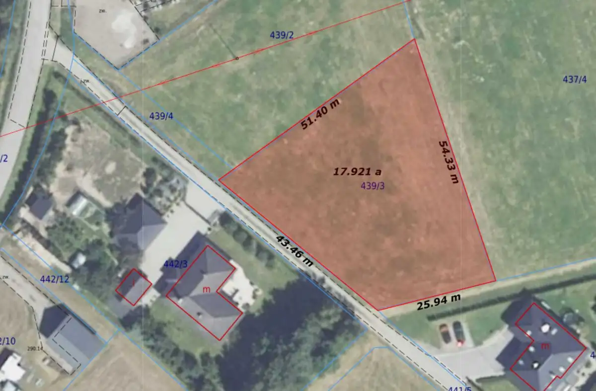 • Numery działek: 439/3 oraz 439/4, która jest drogą.