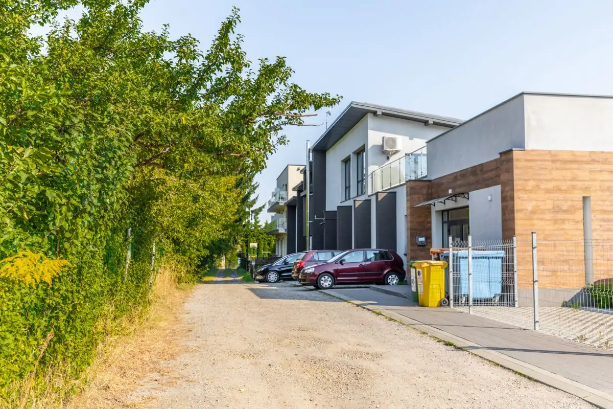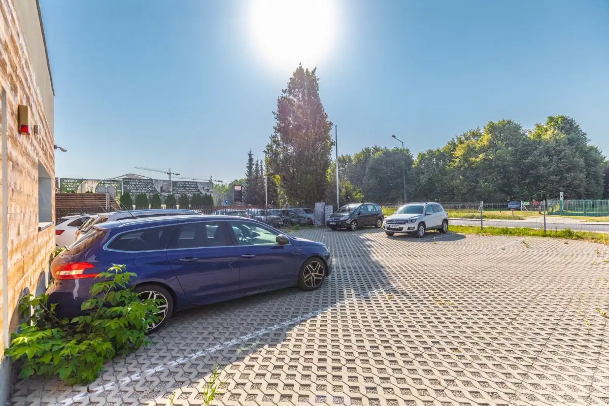 - Komfort i prestiż dla zespołu i klientów:** Prywatny, ogrodzony parking na kilkanaście samochodów oraz dodatkowe miejsca postojowe wzdłuż budynku rozwiązują problem parkowania w mieście.