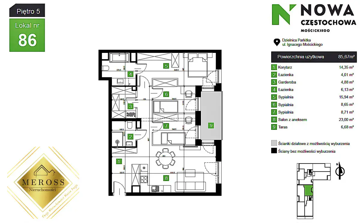 MEROSS Nieruchomości & Nowa Deweloperprzedstawia do sprzedaży mieszkaniezlokalizowane w dzielnicy Parkitka w Częstochowiena osiedlu Nowa Częstochowa Mościckiego Mieszkanie może być...