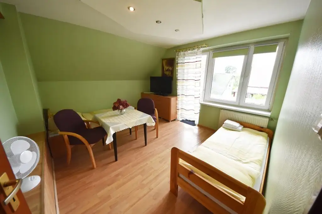 Budynek wybudowano w 1994 roku, został wykonany w technologii tradycyjnej, częściowo docieplony, otynkowany, z dachem krytym dachówką. Posiada instalację elektryczną, wodno-kanalizacyjną, centralnego ogrzewania, grzejniki, stolarkę okienną i drzwiową. Łazienki i toalety wykafelkowane z armaturą łazienkową. Pokoje w całości wyposażone w umeblowanie.