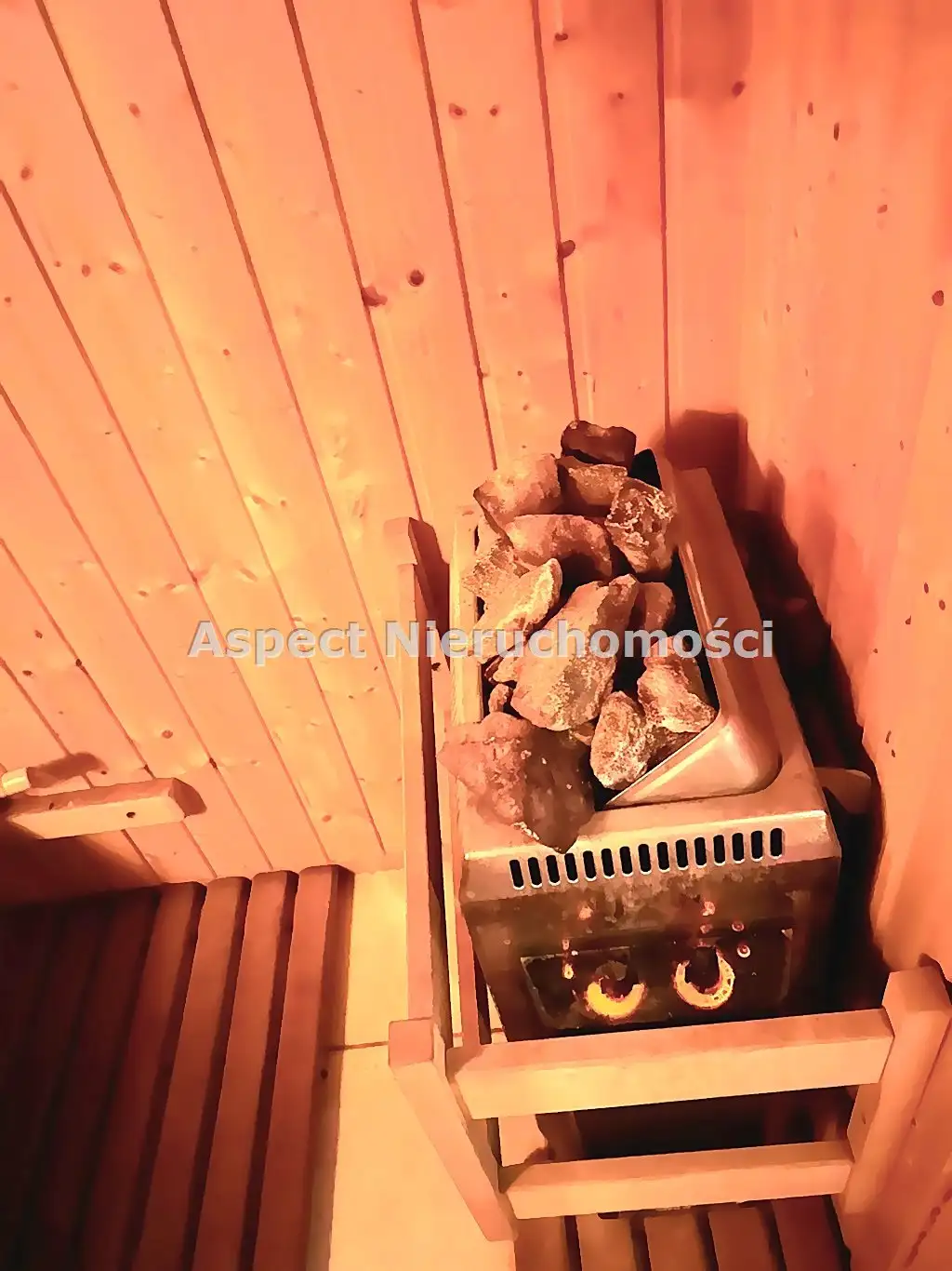 Piwnica: garaż jednostanowiskowy, kotłownia, 3 pomieszczenia (w tym sauna i łazienka z prysznicem).