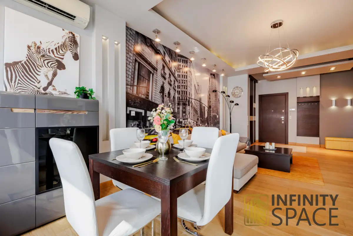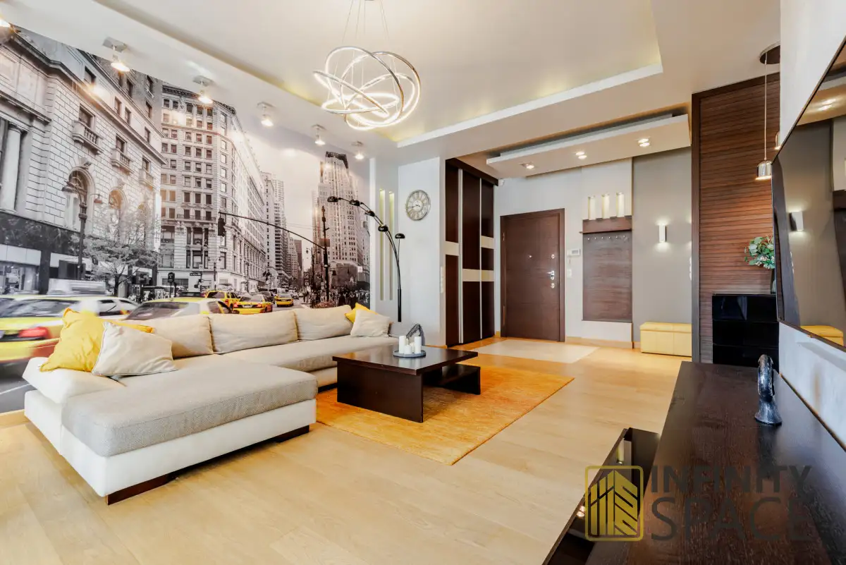 LOCATIONThe flat is located in the vibrant district of Wola, in the heart of Warsaw, close to Grzybowski Square. The central location provides excellent communication - both by car and by public transport. Numerous bus and tram stops, the Rondo ONZ and Świętokrzyska metro stations and the Dworzec Centralny railway station are within walking distance. It also takes less than 20 minutes to get to the Fryderyk Chopin Airport. Right next to the building, in addition to numerous shops, restaurants and cafés, there is the Złote Tarasy shopping centre. In recent years, the steadily developing Grzybowski Square has begun to impress with a multitude of cultural events - festivals, concerts, vernissages or shows. There is probably no similar place on the map of Warsaw that combines both centuries-old monuments and tradition with modern, trendy dining establishments. The place attracts not only the city's inhabitants, but also foreign visitors, who have created a unique space for cultural integration here. The proximity of numerous theatres, cinemas, galleries and museums make the location absolutely unique. The charming Saski Park within walking distance, the historic Old Town or the long commercial tradition of Hala Mirowska give the place a unique character.