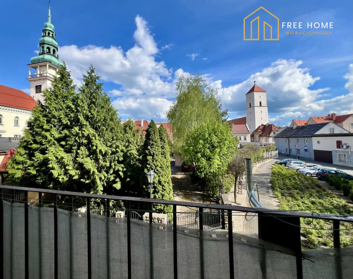 Z balkonu rozciąga się widok na ratusz - to wyjątkowa lokalizacja dla osób ceniących bliskość infrastruktury i klimatyczną zabudowę starego miasta.