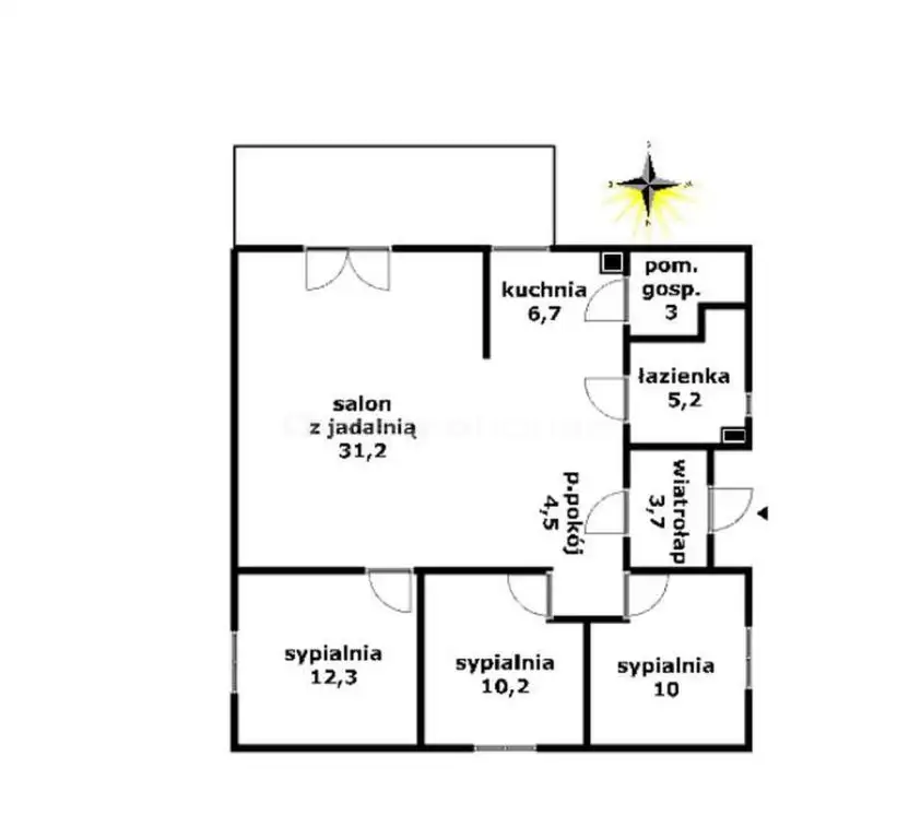 Kuchnia otwarta, połączona z salonem i jadalnią stwarza komfotrową, prawie 40 metrową przestrzeń dzienną. Łazienka z prysznicem. 3 wygodne sypialnie.