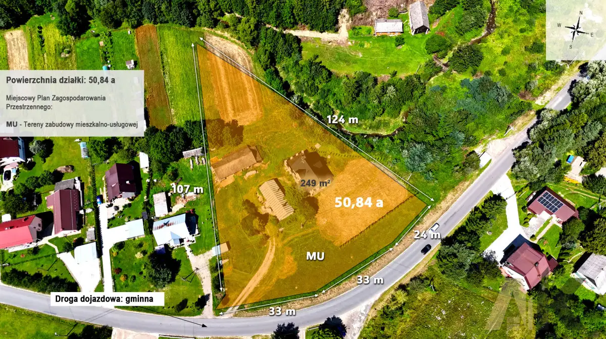 * Dojazd do nieruchomości drogą wewnętrzną utwardzoną wprost z drogi gminnej asfaltowejMEDIA: prąd, siła, szambo, woda z wodociągu prywatnego