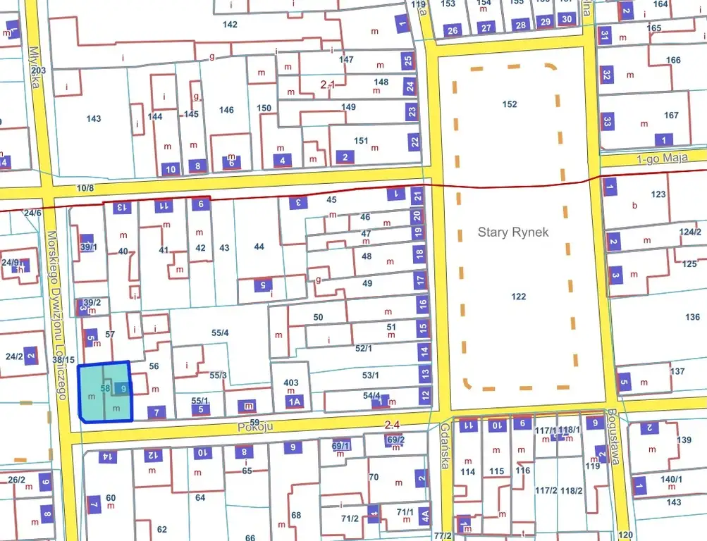 Przedmiotem przetargu jest sprzedaż prawa własności zabudowanej nieruchomości położonej przy ul. Pokoju 9 w Pucku, składającej się z działki oznaczonej w ewidencji gruntów nr 58 o powierzchni 239 m² (obr.2 m.4), użytek: B.