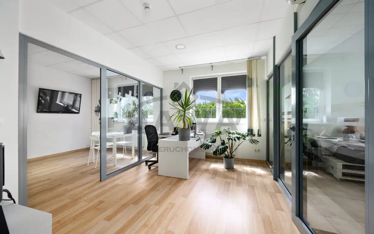 7 - dwa pomieszczenia przedzielone szklanymi witrynami aluminiowymi
