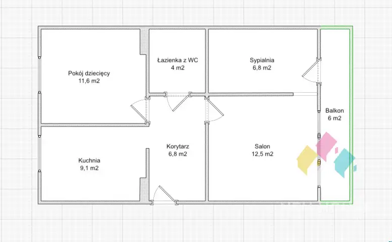 - sypialnia - 6,8 m² (z wyjściem na balkon - 6 m²)