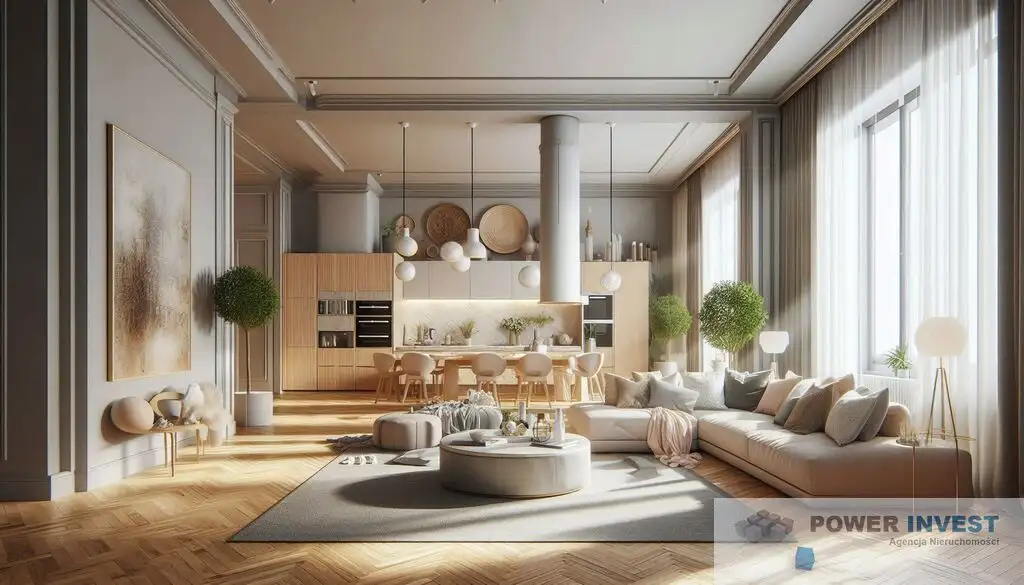 - przestronnego salonu z aneksem kuchennym z wyjściem na taras 120 m²