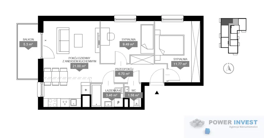 Mieszkanie jest w stanie DEWELOPERSKIM. Zdjęcia przedstawiają wizualizację obiektu.