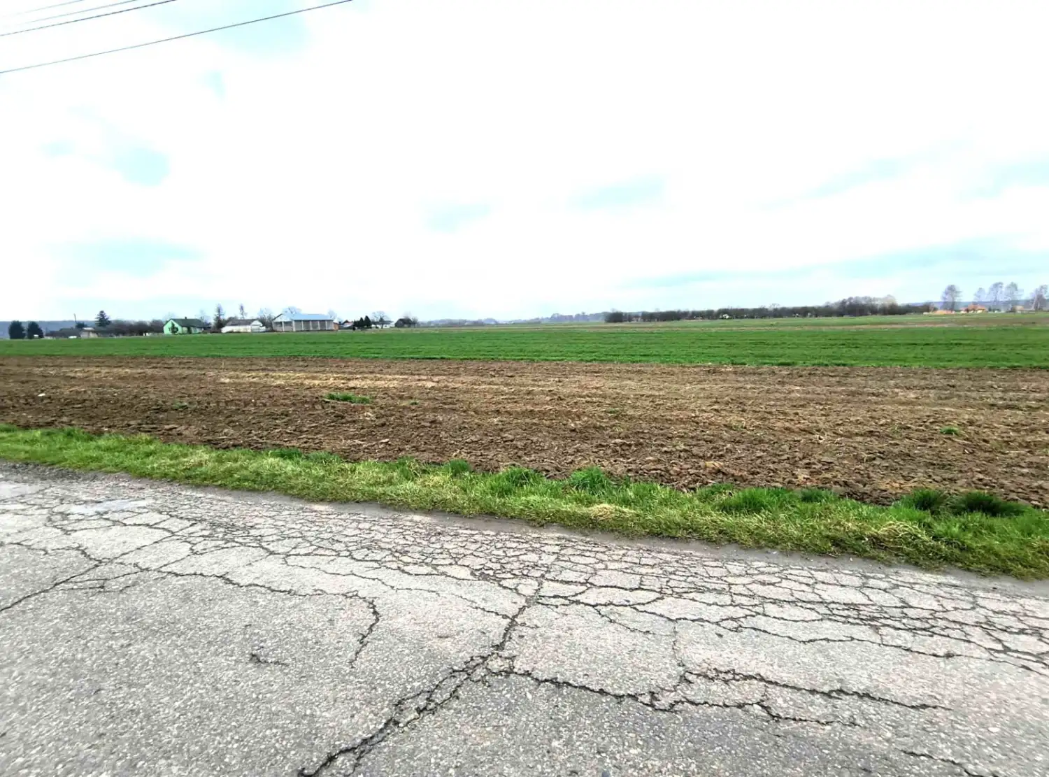 Działka leży w pierwszej linii zabudowy przy drodze asfaltowej i ma kształt prostokąta.