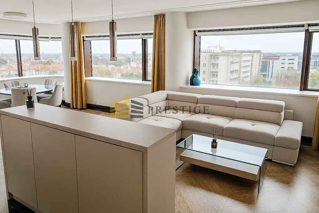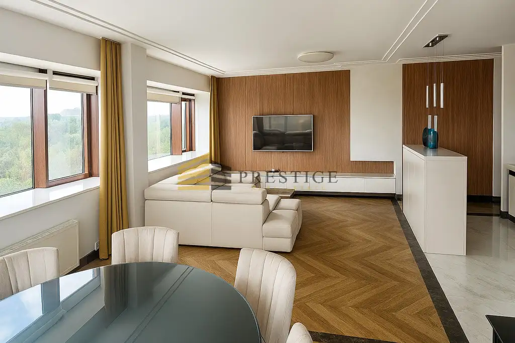 We are pleased to present this luxurious 110 m² apartment, located on the 9th floor of a modern residential building at the intersection of Mokotów and Śródmieście districts – just steps away from Łazienki Park, one of the most beautiful green areas in Warsaw.