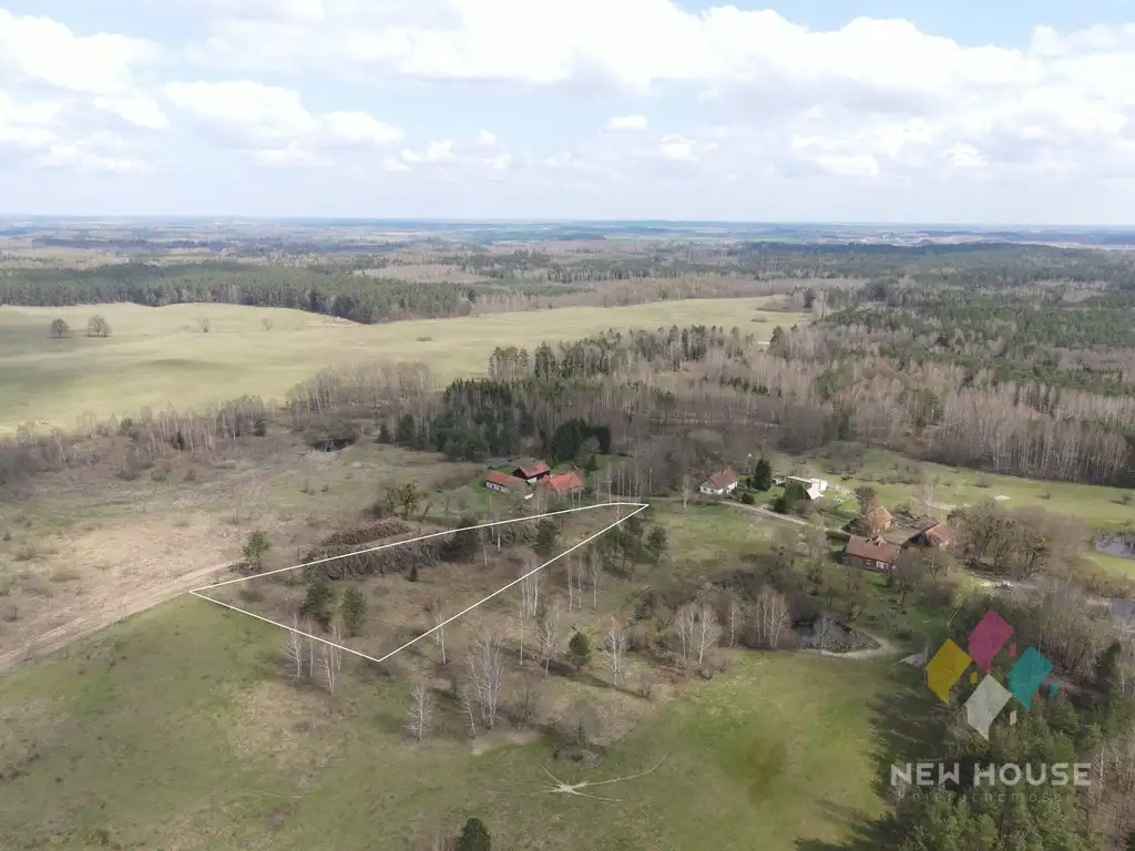 Malownicza działka z wydanymi warunkami zabudowy o powierzchni 6800 m², położona na uboczu warmińskiej wsi, w pobliżu pobliżu ośmiu jezior i niezliczonych kompleksów leśnych.