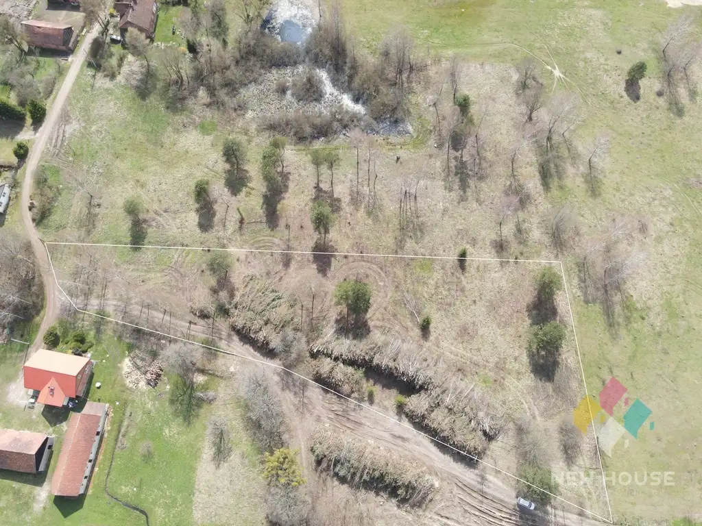 Działka o nieregularnym kształcie i względnie płaskim terenie. Z działki rozciąga się malowniczy widok na okoliczne łąki, pola i las. Duży areał i oddalenie od innych zabudowań daje pełną prywatność i poczucie intymności. Dojazd do działki dobrze utrzymaną polną drogą przez las około 1500 m od asfaltu.