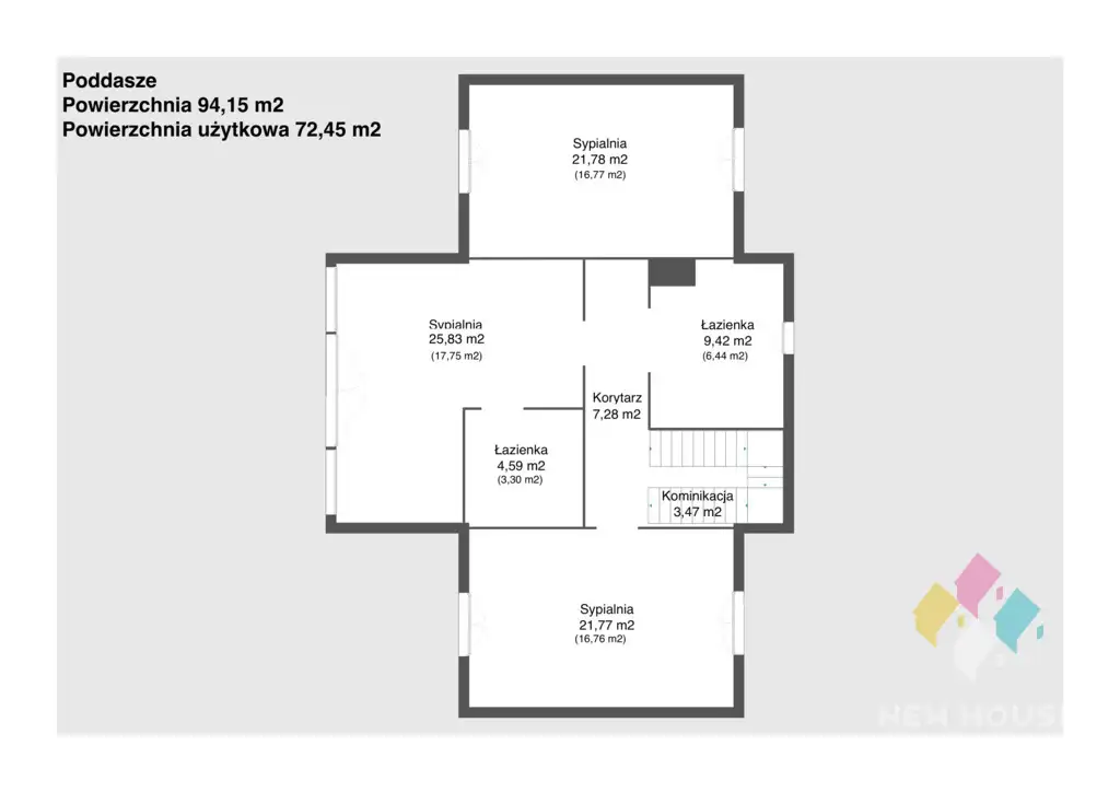 PIĘTRO: (94,15 m² po podłodze, pow. użytkowa 72,45 m²)