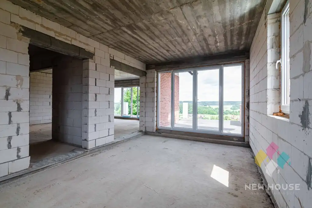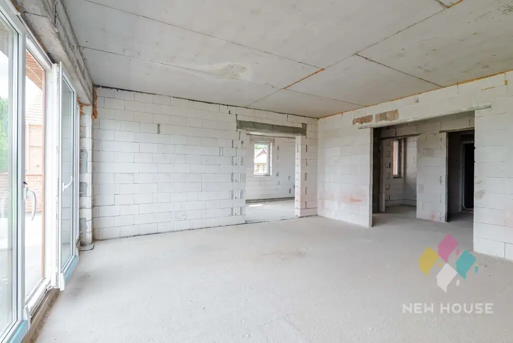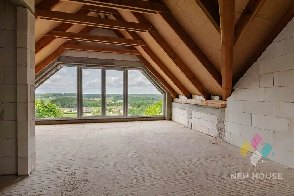 Dom wolnostojący, parterowy z użytkowym poddaszem, podpiwniczony. Rok budowy 2020 r. Budynek w stanie surowym zamkniętym wykonany z wysokiej jakości materiałów w nowoczesnej technologii co zapewnia niskie koszty utrzymania. Zamontowane 3-szybowe okna PCV. Dom o powierzchni całkowitej 238,68 m², powierzchnia użytkowa wynosi 216,98 m².