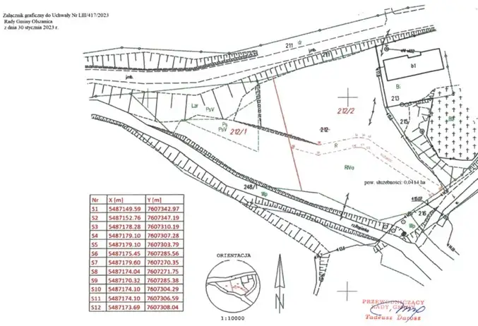 ODPŁATNA ZA JEDNORAZOWYM WYNAGRODZENIEM NIEOGRANICZONA W CZASIE SŁUŻEBNOŚĆ GRUNTOWA POLEGAJĄCA NA PRAWIE PRZEJAZDU I PRZECHODU PRZEZ DZIAŁKI NR 212/3 I 212/4 PASEM O SZEROKOŚCI 5 METRÓW ZAZNACZONYM LINIĄ PRZERYWANĄ KOLORU CZERWONEGO NA MAPIE STANOWIĄCEJ ZAŁĄCZNIK GRAFICZNY DO UCHWAŁY NR LIII/417/2023 RADY GMINY OLSZANICA Z DNIA 30.01.2023 R. NA RZECZ KAŻDOCZESNYCH WIECZYSTYCH UŻYTKOWNIKÓW I WŁAŚCICIELI DZIAŁKI NUMER 212/1 (W CELU DOSTĘPU DO DROGI GMINNEJ OZNACZONEJ NUMEREM EWIDENCYJNYM 216).