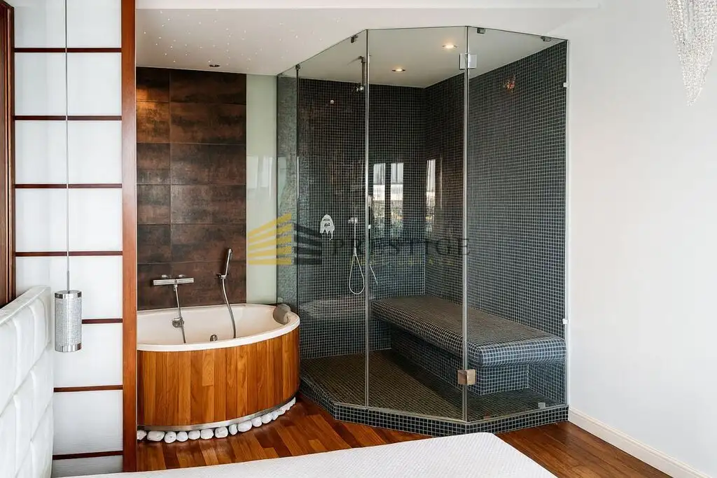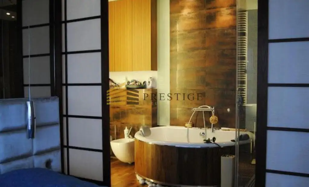 14 panoramicznych okien dookoła sypialni i salonu. Teakowy parkiet na całej powierzchni. Sypialnia połączona z łazienką i garderobą. Duży salon z kuchnią. Pralnia. Druga łazienka. 2 pokoje. Wysokiej klasy AGD, lodówka na wino, armatura Alessi, jacuzzi, klimatyzacja.