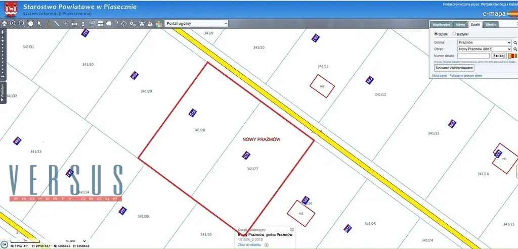 Versus Nieruchomości oferuje do sprzedaży działkę (dwie działki sprzedawane razem) o powierzchni 2000m², dojazd utwardzony, miejscowość Nowy Prażmów ulica Leśna 62H i 62L, nr działek 341/27 341/28