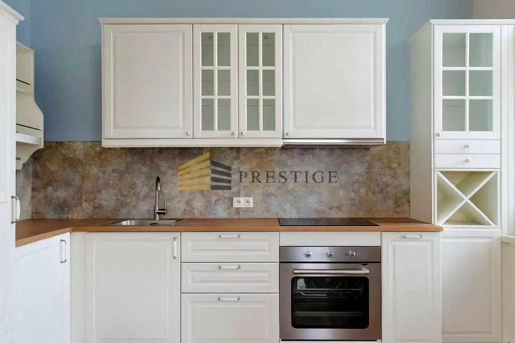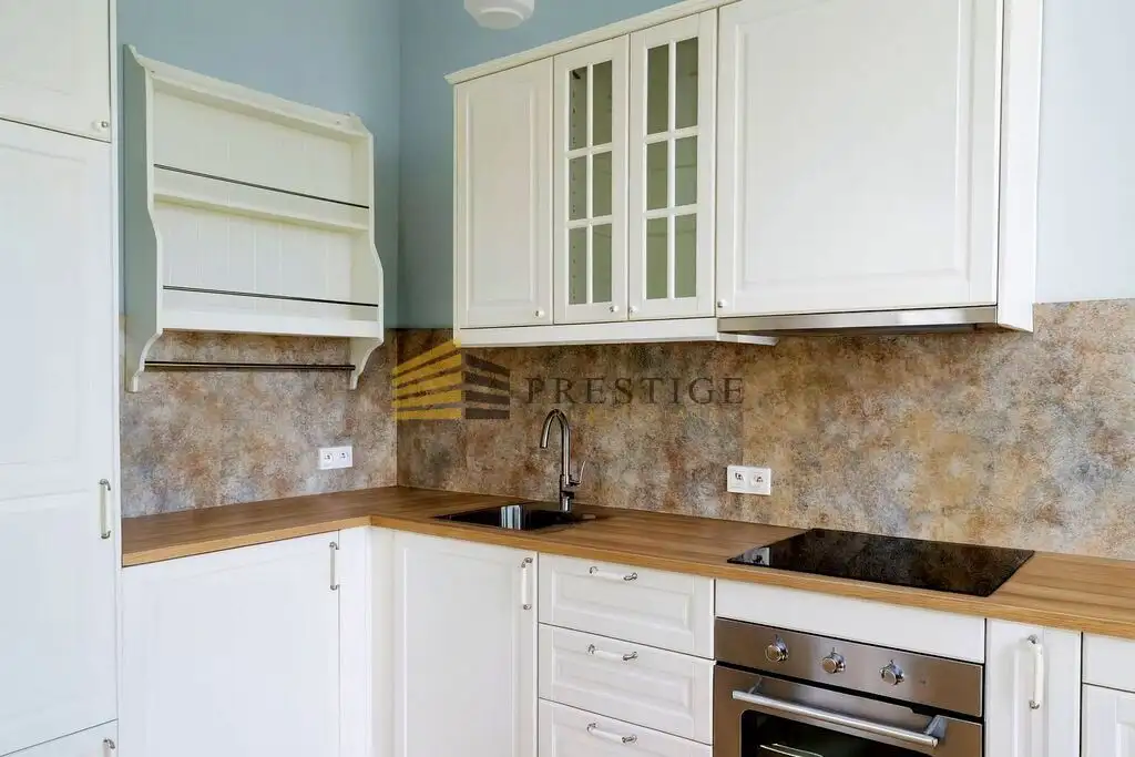 The apartment is situated on the 3rd floor (out of 6, with elevator) in an early 20th-century tenement house with a representative entrance hall. It is bright, spacious, with ceilings over 3 meters high, and tastefully furnished with great attention to detail.