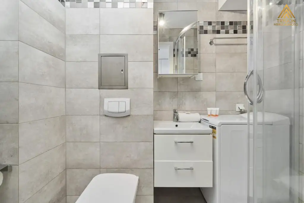 Kawalerka o powierzchni 27 m² - na których umieszczony jest aneks kuchenny, przestrzeń wypoczynkową oraz łazienkę z toaletą. Mieszkanie gotowe do zamieszkania, w pełni umeblowane i wyposażone wraz z zamontowaną klimatyzacją. Ekspozycja okien południowy-wschódnia, balkon francuski.
