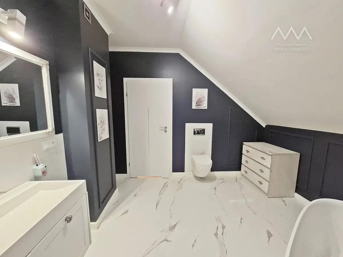 - sypialnia główna z łazienką (prysznic) i garderobą