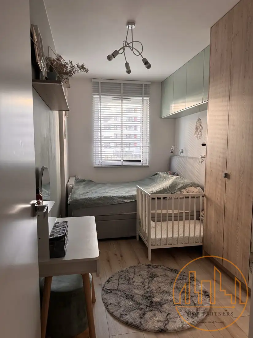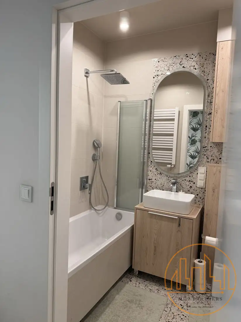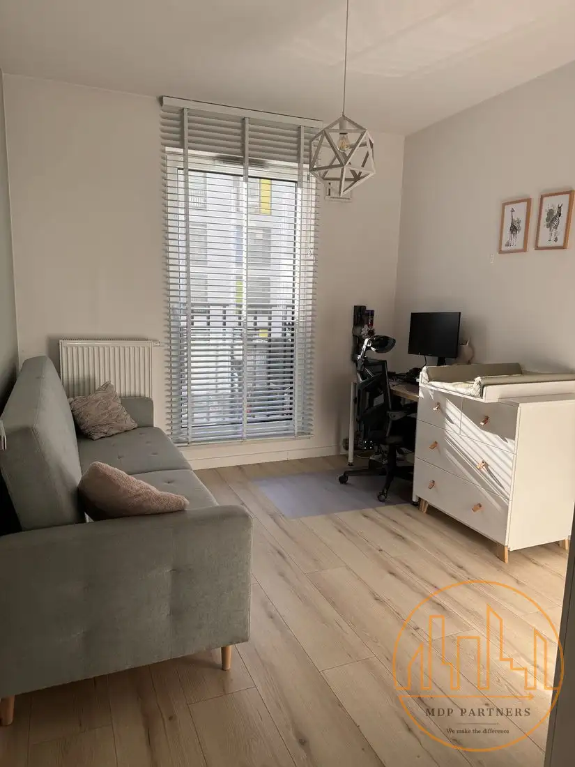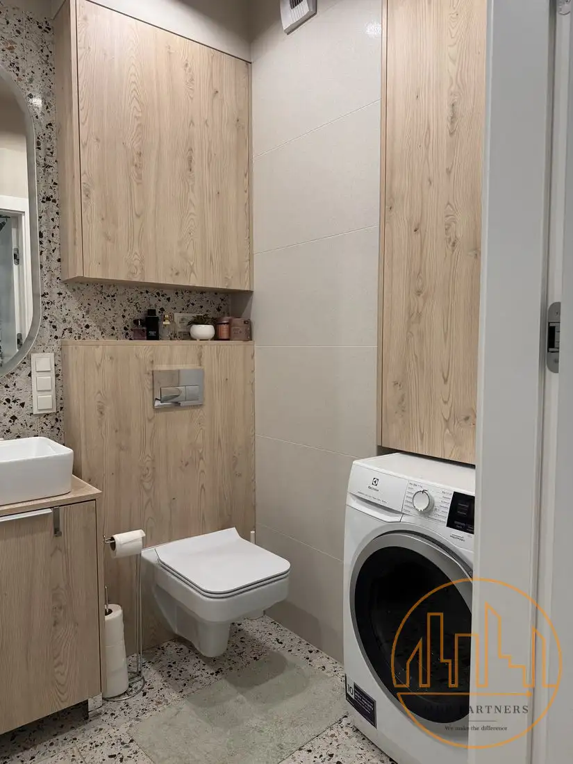Mieszkanie zostało urządzone z dbałością o każdy detal — meble wykonane na wymiar przez stolarza, wysokiej jakości sprzęty AGD oraz klimatyzacja zapewniają komfort użytkowania.