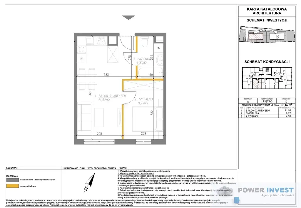 Mieszkanie znajduje się na 1 piętrze, ma powierzchnię 35.52 m² i składa się z: