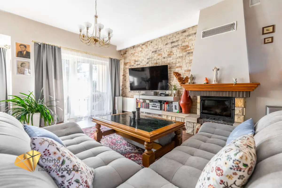 - salon z kominkiem o pow. 32,7 m² z wyjściem na taras od południowej strony.