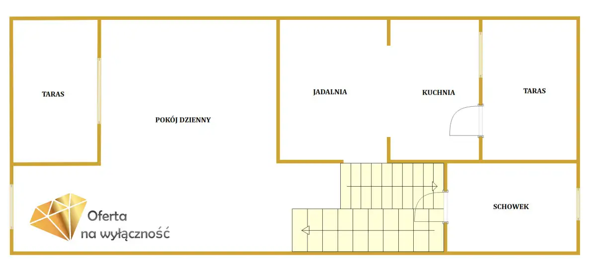 - kuchnia z jadalnią o pow. 17,3 m², otwarta na salon i z wyjściem na taras