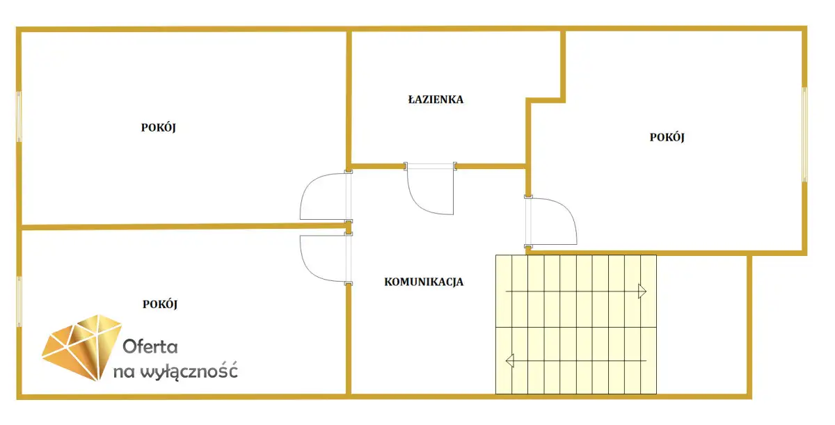 - 3 pokoje o pow. ok 10 m², 10 m² oraz 9,4 m²