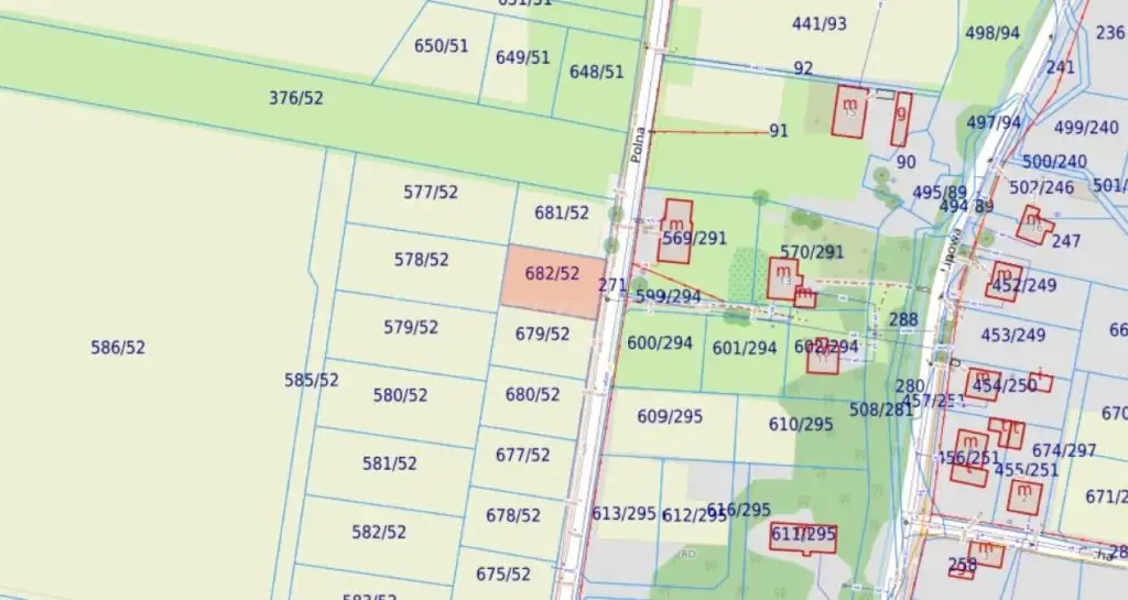 Działka o powierzchni 689 m² ma wymiary 21 x 33m.