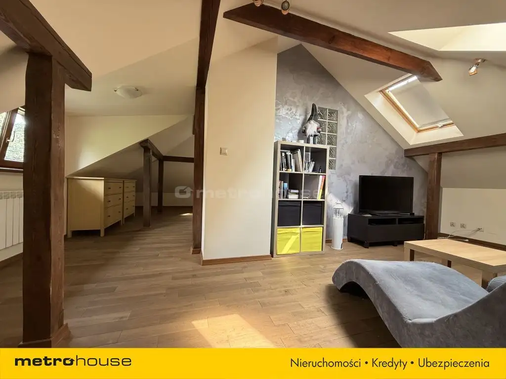 Strych zaadaptowany na przestronny pokój rekreacyjny, idealny na salę zabaw lub strefę relaksu