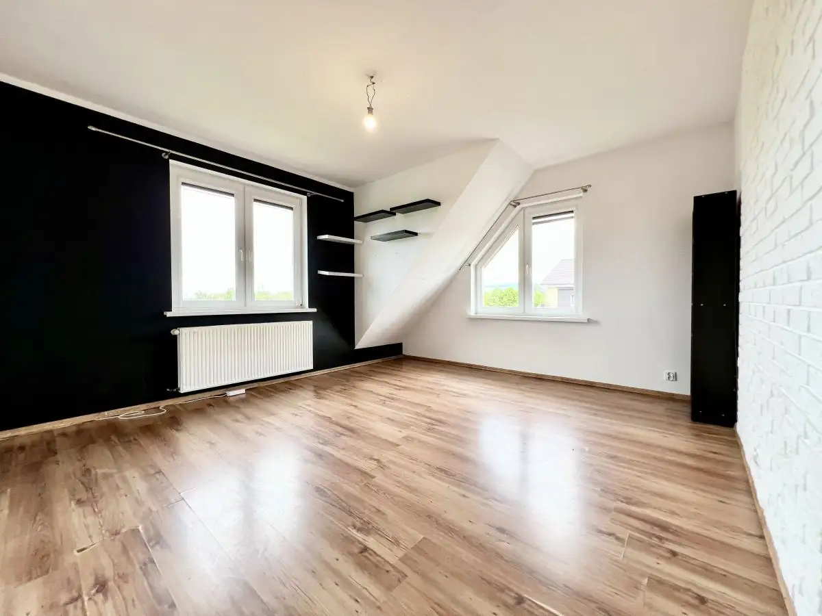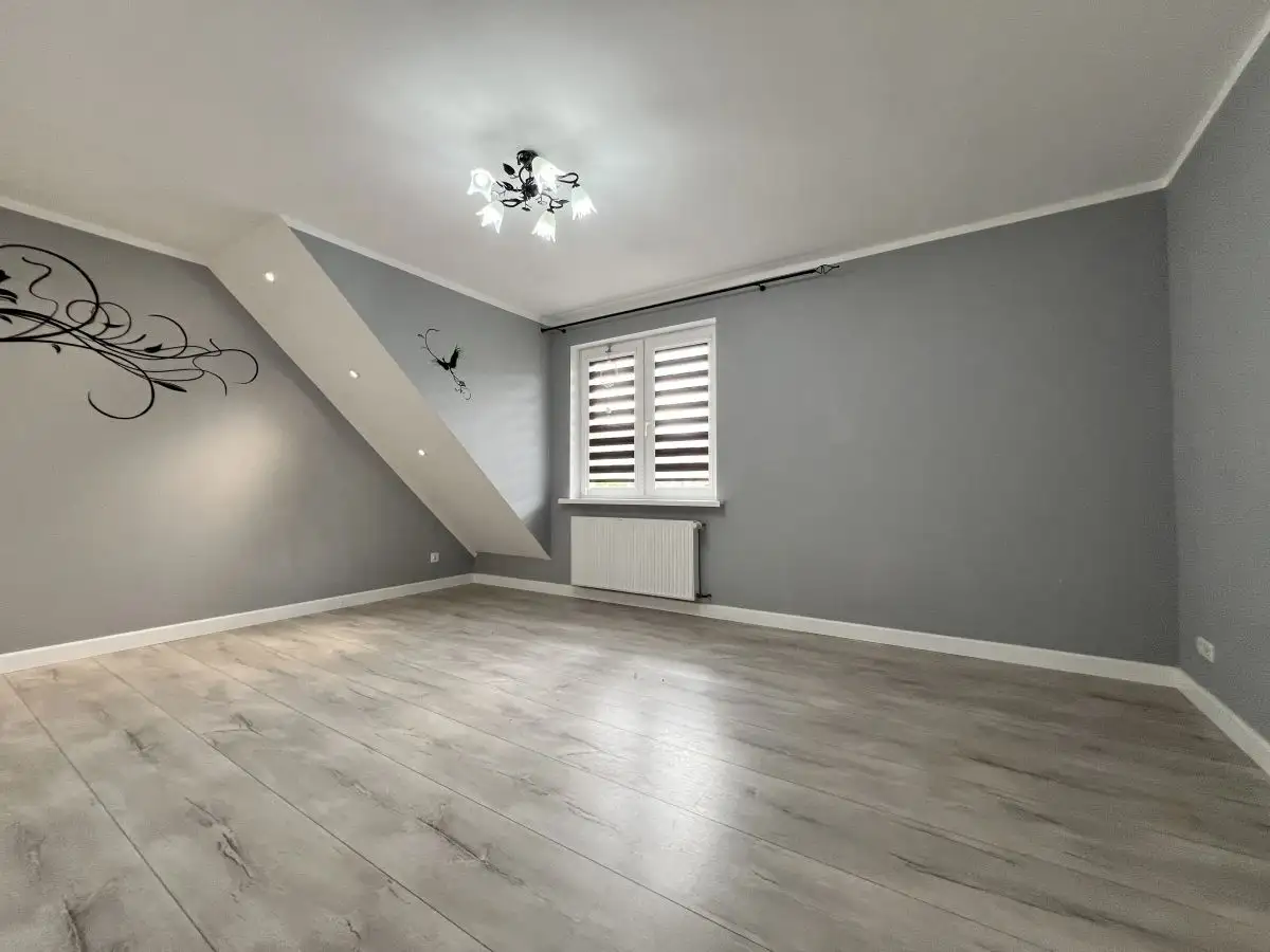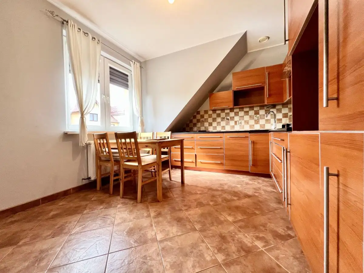 Oferowana nieruchomość to w pełni niezależny lokal mieszkalny o łącznej powierzchni 118,85 m², zajmujący całe piętro oraz poddasze w kameralnym, dwulokalowym budynku, co zapewnia komfort i prywatność porównywalną z domem jednorodzinnym. Funkcjonalny układ obejmuje część mieszkalną o powierzchni 82,38 m², na którą składają się 3 ustawne pokoje, jasna kuchnia, łazienka z WC oraz przedpokój. Nieruchomość uzupełnia garaż w bryle budynku (15,85 m²) oraz bardzo duża piwnica (20,62 m²), która stanowi doskonałą, dodatkową przestrzeń do przechowywania lub aranżacji np. na domową siłownię. Do dyspozycji właściciela jest również balkon.