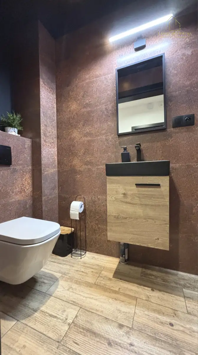- Łazienka- wyposażona w nowoczesne sanitariaty, w której znajdziesz komfortowy duży prysznic, toaletę oraz bidet.