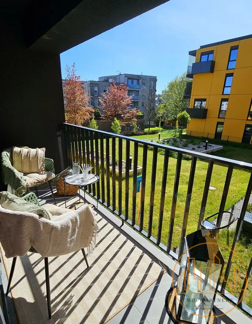 Południowo-zachodnia ekspozycja okien zapewnia jasne, słoneczne wnętrza i sprzyja relaksowi na balkonie.