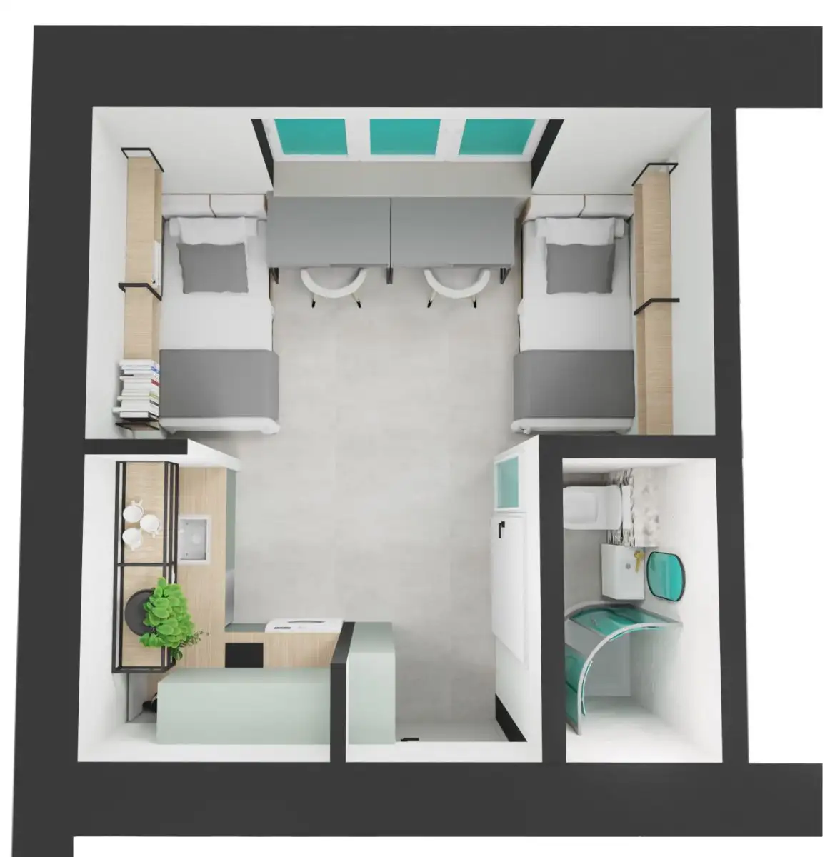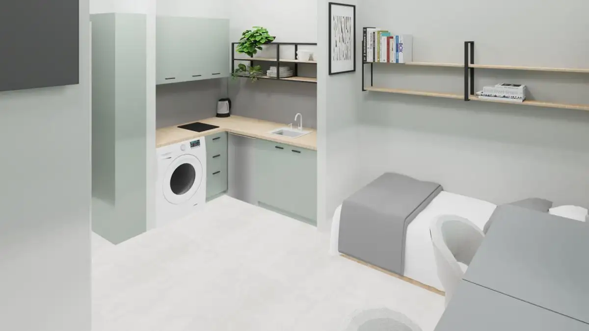 Pokój z aneksem kuchennym, sypialnia i łazienka, w pełni wyposażony i wykończony w wysokim standardzie w 2025 roku.