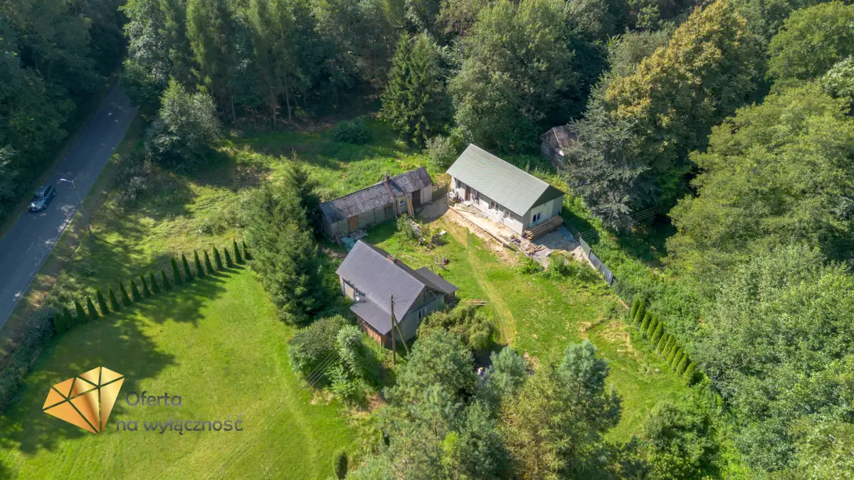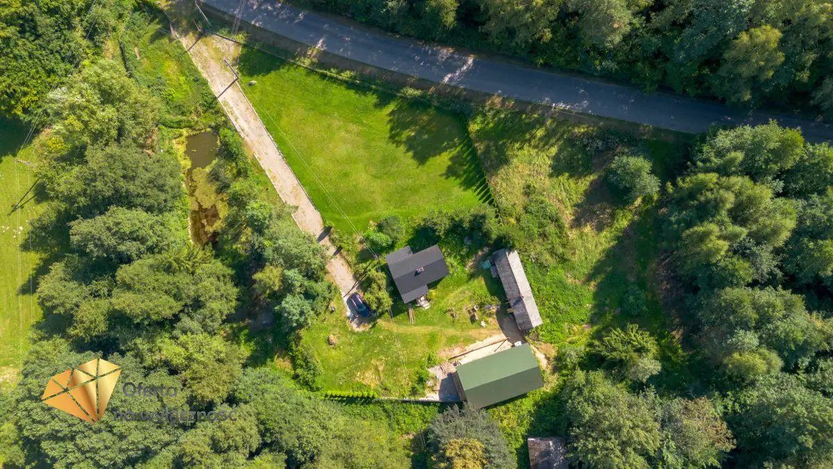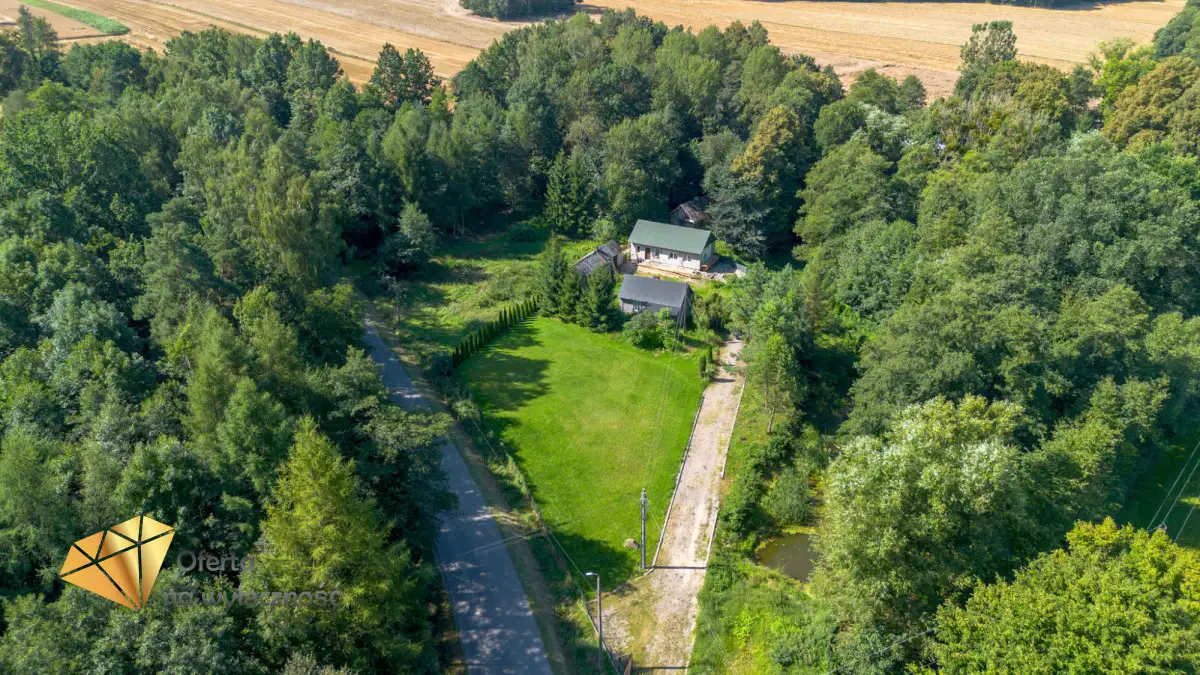 Ogrodzona działka o powierzchni 4812m², która graniczy z rzeką i jest otoczona sąsiedztwem lasu co tworzy filmowy klimat. Znajduje się tu również niewielki staw z roślinnością wodną, który może być chwilą relaksu dla wędkarzy.
