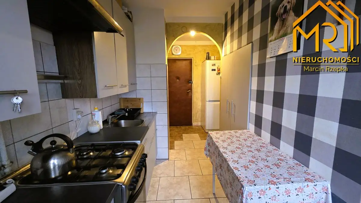 Mieszkanie składa się z trzech ustawnych pokoi, oddzielnej, widnej kuchni, łazienki, osobnego WC oraz przestronnego przedpokoju. Dodatkowym atutem jest duża loggia, z której rozpościera się przyjemny widok na okolicę. Do lokalu przynależy również piwnica oraz współdzielona wózkownia. Blok po termomodernizacji.