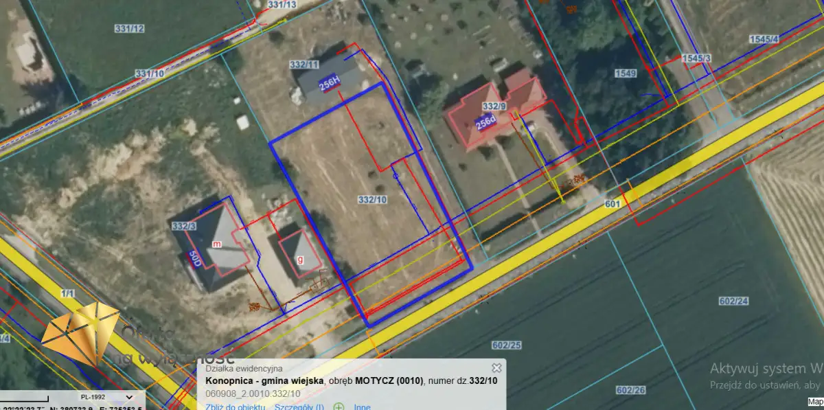 Działka o nr 332/10 w pierwszej linii zabudowy przy gminnej drodze asfaltowej.