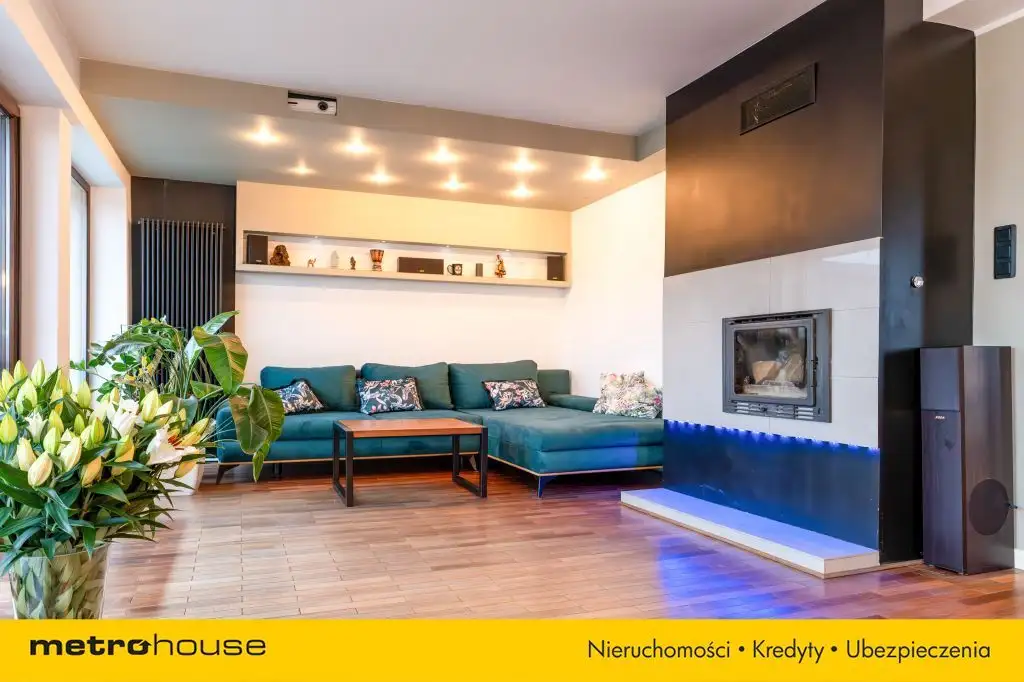 Parter: Przestronny salon dzienny o wyjątkowej atmosferze, kino domowe z kominkiem, nowoczesna kuchnia wyposażona w sprzęt klasy premium, pokój gościnny oraz stylowa łazienka dla gości.