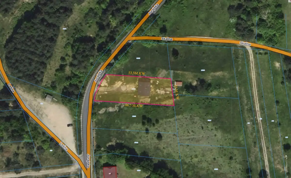 Nieruchomość położona na działce o powierzchni 1374 m², oraz przybliżonych wymiarach 57m x 23,5 m