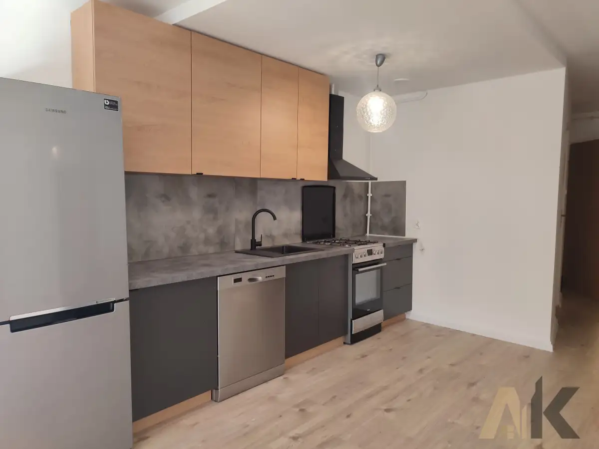 Wyposażenie: Mieszkanie jest w pełni umeblowane i wyposażone w sprzęt AGD (lodówka, zmywarka, pralka, kuchenka). W salonie znajduje się stół z krzesłami, rozkładana sofa.