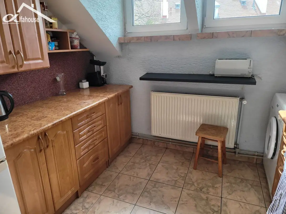 Kuchnia z oknem, widna, od strony zachodniej,, pokój jest rozmieszczony od strony wschodniej .