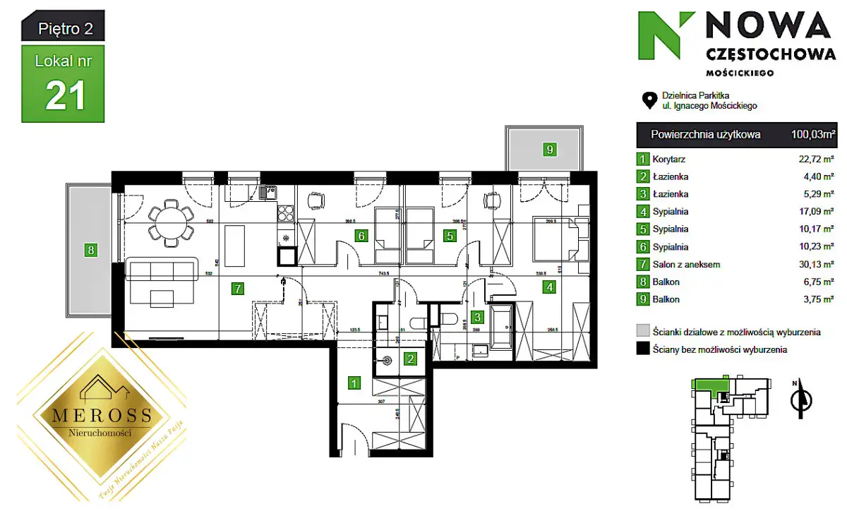 MEROSS Nieruchomości & ParkLand Inwestycjeprzedstawia do sprzedaży mieszkaniezlokalizowane w dzielnicy Parkitka w Częstochowiena osiedlu Park MałopolskaMieszkanie może być wyposażonew Inteligentny...