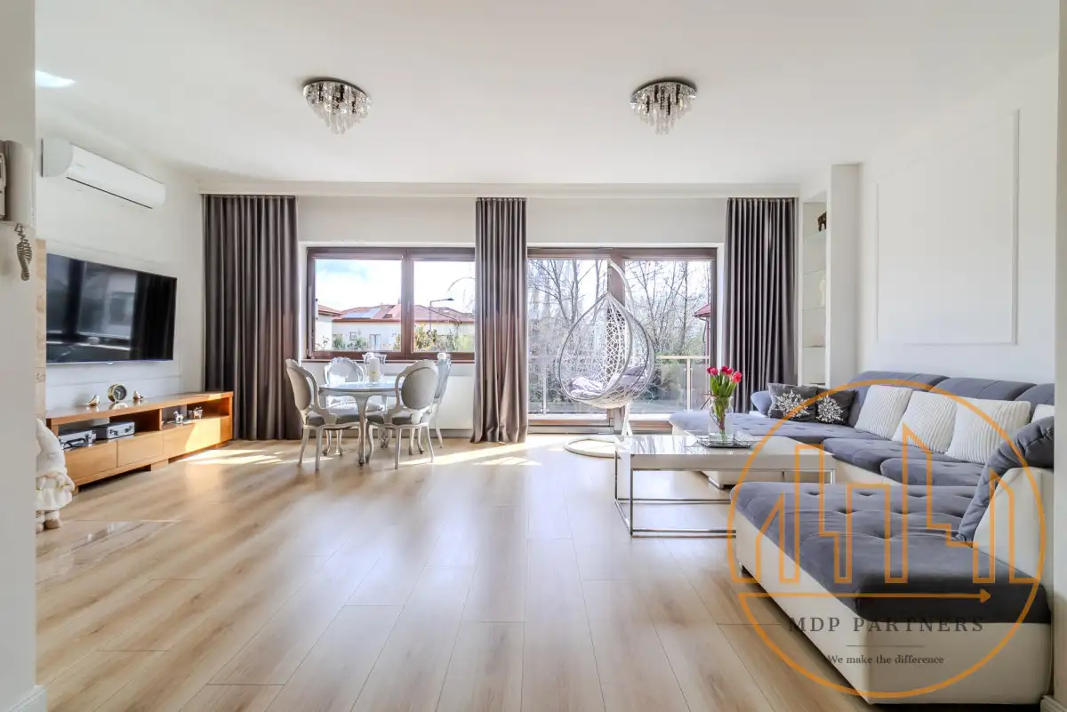 Na sprzedaż przedstawiam wyjątkowy, nowoczesny i starannie utrzymany segment bezczynszowy o powierzchni 198 m² z własnym garażem i dużym ogrodem (ok. 400 m²). Nieruchomość zlokalizowana jest na cichym, zielonym osiedlu w warszawskim Wawrze - idealnym miejscu dla osób szukających komfortu, spokoju oraz wygodnego dojazdu do centrum miasta.