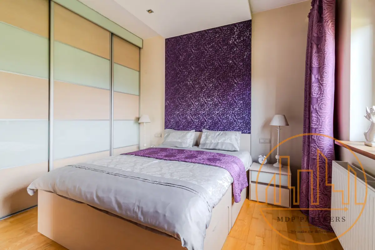 -Sypialnia (ok. 16 m²) z meblami na wymiar i oknami od wschodu