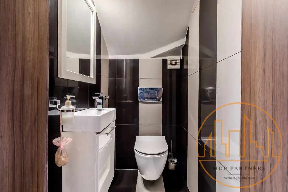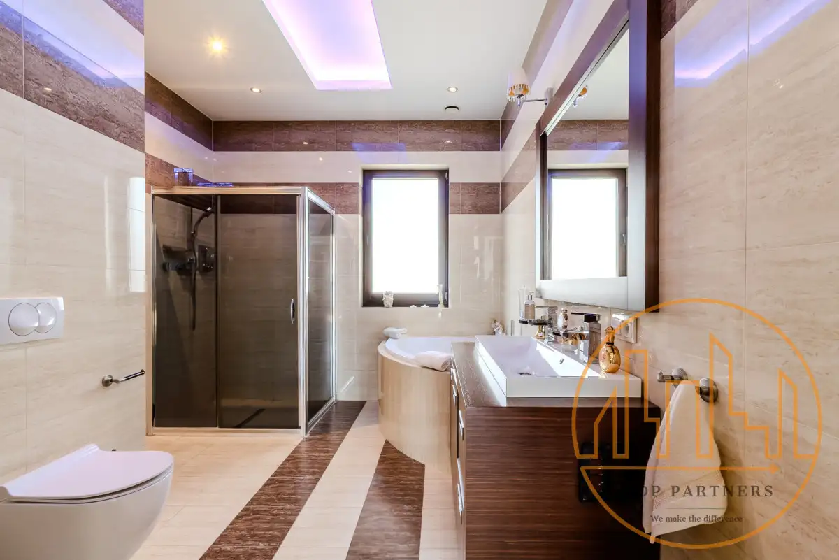 -Duża łazienka z wanną z hydromasażem, prysznicem i pralnią - dostęp do akwarium